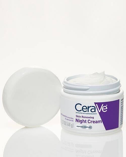 2. Improved skin barrier: CeraVe Night Cream contains ceramides that not only help protect the skin by moisturizing but also help rejuvenate the skin barrier through biomimetic peptides.
